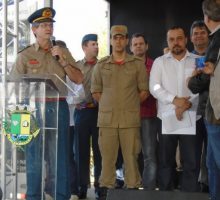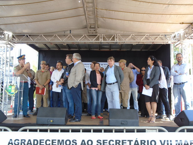 Na quarta-feira, 25, o 2º Pelotão Bombeiro Militar, em Cristalina, realizou a solenidade de assinatura oficial da Ordem de Serviço para a retomada da obra de construção da sede definitiva do quartel de Cristalina. O Comandante-Geral do Corpo de Bombeiros Militar, Coronel Carlos Helbingen Júnior, o Secretário de Estado do Meio Ambiente , Vilmar Rocha, e o Prefeito de Cristalina, Luiz Carlos Attiê, assinaram o documento que autoriza a obra. A construção da nova sede será implementada através de convênio entre o Governo do Estado de Goiás e a Prefeitura Municipal de Cristalina e oferecerá uma estrutura moderna para melhor atender a população do município. Confira fotos: