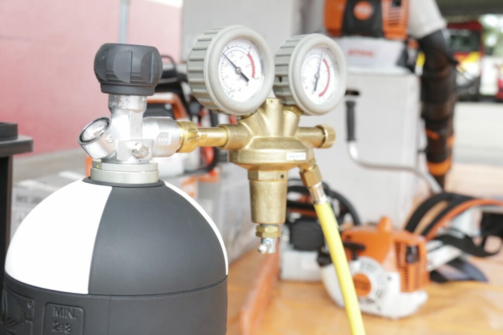 Foram entregues ao serviço operacional e administrativo do Batalhão, uma cascata compressora de ar respirável, sopradores para combate a incêndio florestal, almofadas pneumáticas para salvamento veicular, motosserras, colchões e tendas adquiridos com recursos do Fundo Especial de Reaparelhamento e Modernização do Corpo de Bombeiros Militar e Fundo Especial Municipal de Aparecida de Goiânia.