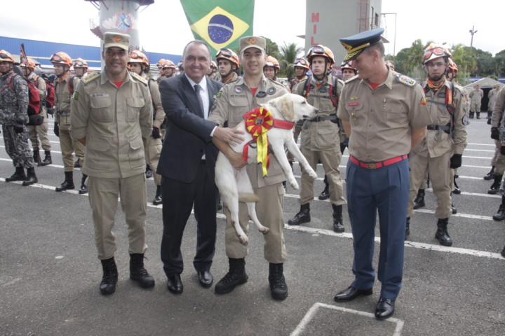Durante a Cerimônia foi realizado uma homenagem a cadela Hanna que atuou no resgate em Brumadinho e encerrou sua atuação no CBMGO, após 8 anos de serviços prestados ao CBMGO.