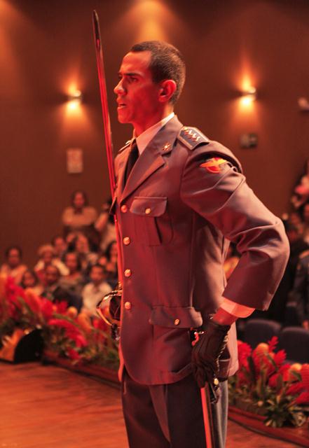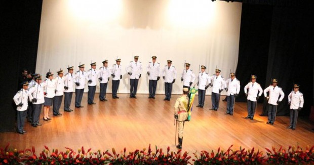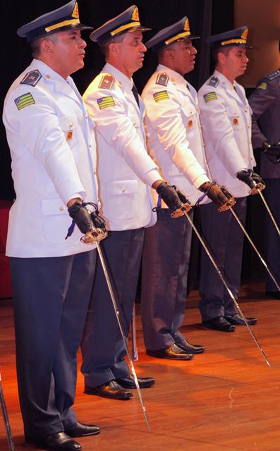 Durante a solenidade, os formandos receberam a espada, símbolo do oficialato da Corporação, prestando o juramento como novos oficiais.