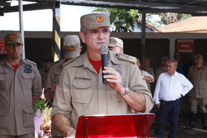 O Corpo de Bombeiros Militar do Estado de Goiás (CBMGO) promoveu na manhã desta quinta-feira, 1º, a passagem de Comando do Batalhão Bombeiro Militar de Rio Verde. O Tenente Coronel Amilton de Souza Conceição assumiu o comando até então exercido pelo Tenente Coronel Cleber Cândido de Oliveira. A solenidade foi presidida pelo Comandante Geral do Corpo de Bombeiros Militar do Estado de Goiás, Coronel Carlos Helbingen Júnior. Diversas autoridades civis e militares prestigiaram o evento. Na oportunidade, os bombeiros militares Capitão Devaci Martins de Melo, Subtenente Hélio Martins de Oliveira e Soldado Erick Pereira Lemes entregaram uma homenagem ao Tenente-Coronel Cleber Cândido de Oliveira , pelos relevantes serviços prestados em prol da Unidade de Rio Verde. Ao fazer uso da palavra, o Comandante Helbingen elogiou a gestão do Tenente Coronel Cleber destacando suas ações pelo fortalecimento do CBMGO na região e desejou votos de sucesso ao novo comandante. Confira fotos: