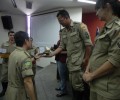 Nesta sexta-feira, 27, às 8h30min, no auditório da Secretaria de Estado da Segurança Pública, foi realizado o 2° Seminário de Emergências Médicas. O evento começou com as palavras do Coronel Celso Ofugi, Comandante do 3º Comando Regional, que ressaltou a importância do Seminário para o Corpo de Bombeiros Militar. Em seguida, foram realizadas palestras, na seguinte ordem: Riscos ocupacionais no APH, palestrante Juliana Rodrigues de Santana – Enfermeira Presidente da Maternidade Nossa Senhora de Lurdes; Controle de Vacina do Socorrista, palestrante Capitão Fábio Lopes de Camargo – Médico do CSAU/CBMGO; Estatística de acidentes de trabalho e Atestado de Origem, palestrante Ana Paula de Souza de Lopes – Técnica de Segurança do Trabalho SESMT/CBMGO, Uso de Equipamento de Proteção Individual no APH, Sargento Welington Rodrigues da Silva, Presidente da CIPA e Socorrista do BSE; Boas Práticas e Higienização de Materiais de APH. Modelos de áreas de desifecção implantadas no CBMGO, Palestrante Cabo Maísa Alves Ribeiro – Enfermeira Especialista em Urgência e Emergência e Socorrista do Batalhão de Salvamento e Emergência; Projeto de áreas de desinfecção, Palestrante Solange do Socorro F. Tavares -Enfermeira e Fiscal de Saúde Pública e Respostas, por último, foi realizado Debate com perguntas e esclarecimentos aos participantes, coordenado pelo Tenente Coronel Jonas Henrique Moreira Bueno – Comandante do Batalhão de Salvamento e Emergência. Confira fotos: