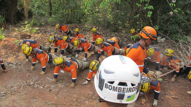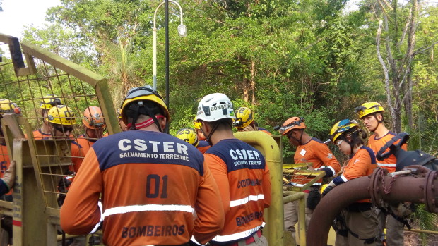 Confira fotos do Curso em Salvamento Terrestre em instrução de resgate de vítima em mina subterrânea