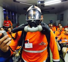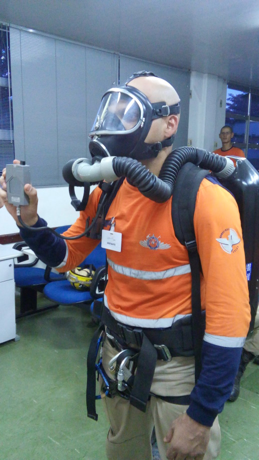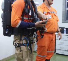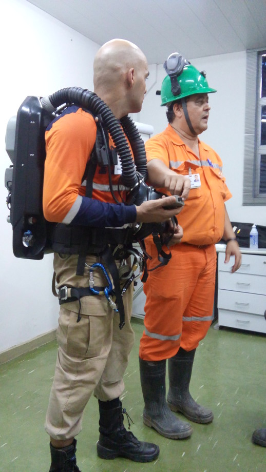 Foi realizada também, demonstração de Equipamento Autônomo de Proteção Respiratória com capacidade de duração para 4 horas empregado em atividades de salvamento e resgate em minas subterrâneas, recomendado pela MSHA (Mine Safety and Health Administration) agência ligada ao Departamento de Trabalho dos Estados Unidos. Confira fotos: