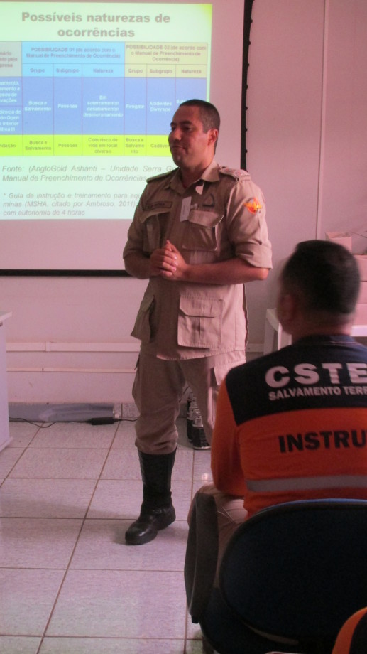 Visando capacitar os futuros especialistas para possíveis ocorrências neste tipo de ambiente os alunos tiveram a oportunidade de conhecer quais as cidades do Estado de Goiás em que são desenvolvidas atividades de mineração subterrânea, quais as profundidades máximas das minas existentes e quais as possíveis ocorrências em que haveria participação do Corpo de Bombeiros Militar.