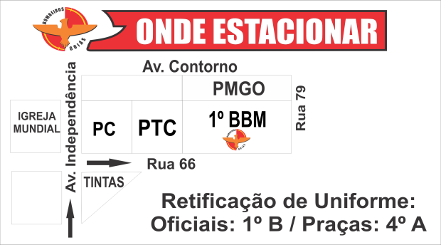 • Estacionamento Delegacia do Consumidor/Pol.Tec.Científica (Acesso principal pela Rua 66 – destinado aos Oficias Superiores, Homenageados e Autoridades convidadas); Estacionamento em frente ao1o BBM (Acesso principal pela Rua 66 – destinado a entrega de viaturas).