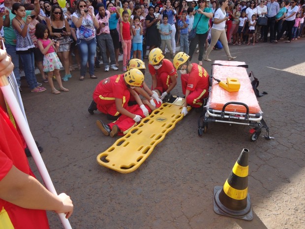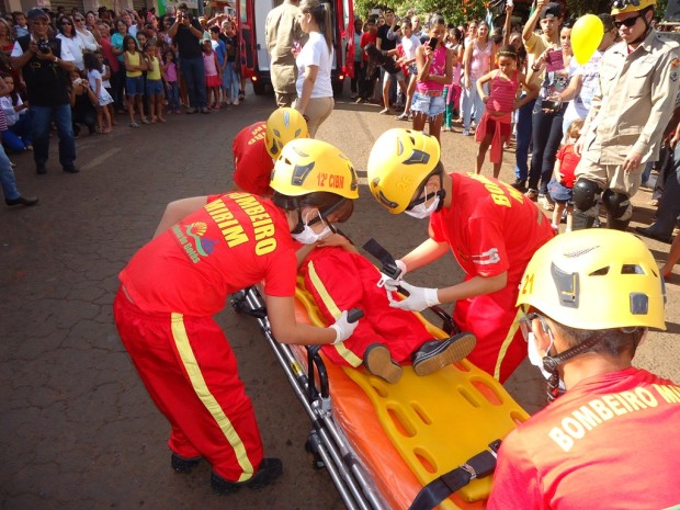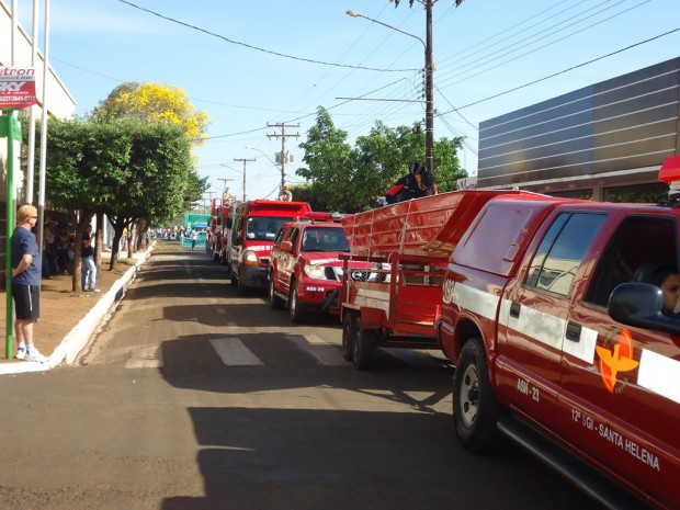 A 12ª Companhia Independente Bombeiro Militar desfilou com viaturas administrativas e operacionais, além de crianças do Projeto Educacional Bombeiro Mirim – PROEBOM. Confira fotos: