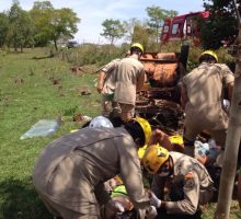 Bombeiros do Batalhão de Salvamento e Emergência atuaram em grave acidente (capotamento) na GO-462, município de Santo Antônio de Goiás, a 27 Km da capital. No local da ocorrência haviam duas vítimas, uma delas gestante de 8 meses que queixava-se de fortes contrações e foi transportada para o Hospital de Urgências de Goiânia pelo Helicóptero Bombeiro 01. A segunda vítima apresentava suspeita de fraturas em membros superiores e foi conduzida pela UR-143 ao mesmo hospital. Confira fotos: