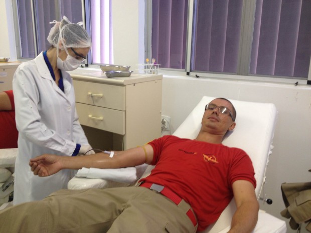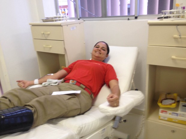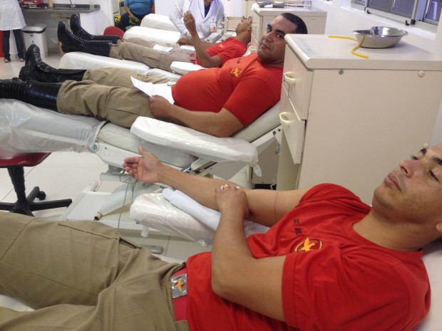 Bombeiros Militares do Estágio de Aperfeiçoamento de Sargentos, na manhã de quinta-feira, 13, participaram de campanha de doação de sangue no Hemocentro de Goiás. Os militares que foram voluntários dão o exemplo e tentam assim sensibilizar os goianos para a importância do ato.