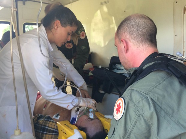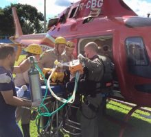 Segunda a equipe médica foi uma situação clássica de atendimento no qual o serviço aéreo fez diferença. A vítima apresentava baixa oxigenação, trauma torácico, fratura exposta de tíbia e suspeita de trauma raquimedular e trauma abdominal. Outras duas vítimas foram transportadas e estavam estáveis no Hospital Municipal de Nazário e quarta vítima foi a óbito no hospital. Confira fotos: