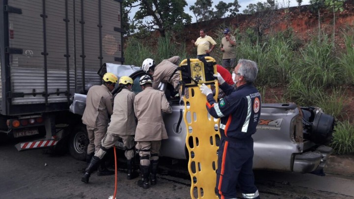 No local, uma caminhonete colidiu na traseira de um caminhão. O acidente deixou o condutor da caminhonete preso às ferragens. Com o uso do desencarcerador, os bombeiros realizaram a retirada das ferragens,  e em seguida, a remoção da vítima.
