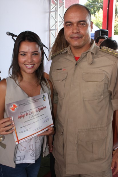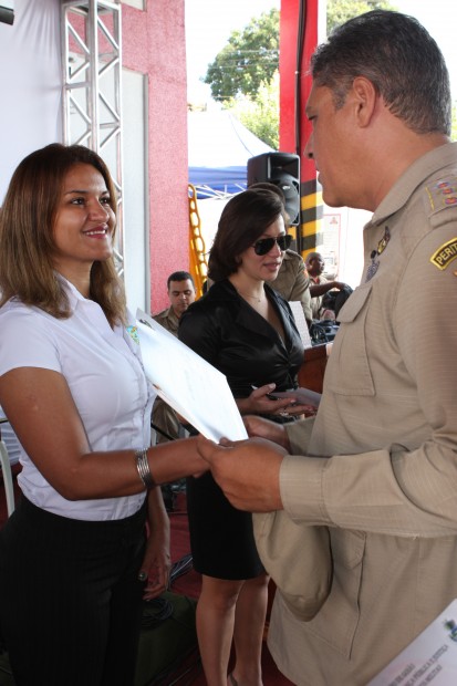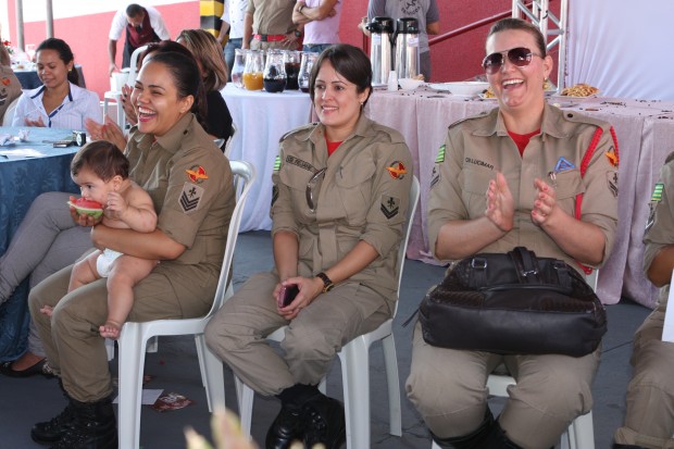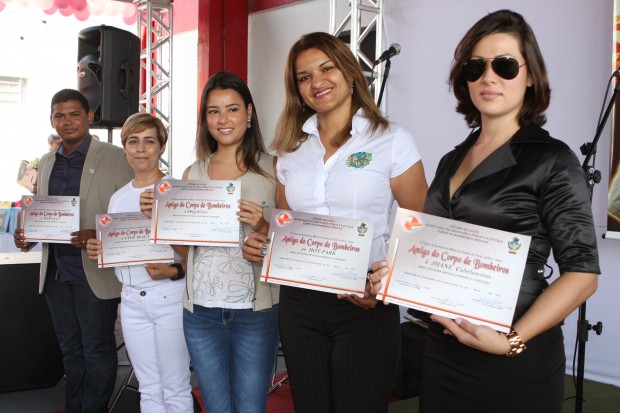 As militares Capitã Helaine, Sargento Luciana e Sargento Kássia foram homenageadas pelos relevantes serviços prestados ao Corpo de Bombeiros Militar. As empresas participantes do evento receberam das mãos do Comandante Geral o Certificado Amigo do Bombeiro.