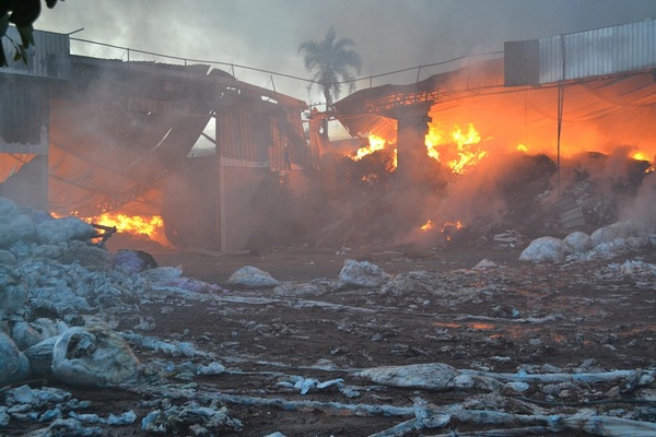 Corpo de Bombeiros Militar combate incêndio de grande proporção em fábrica de fraldas no município de Rialma
