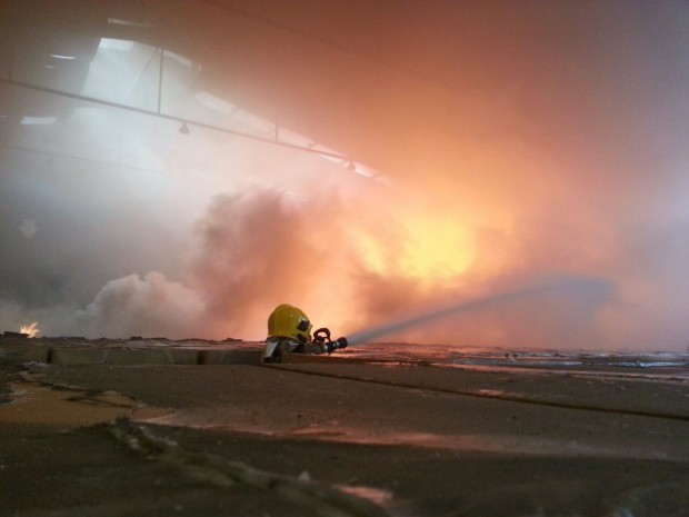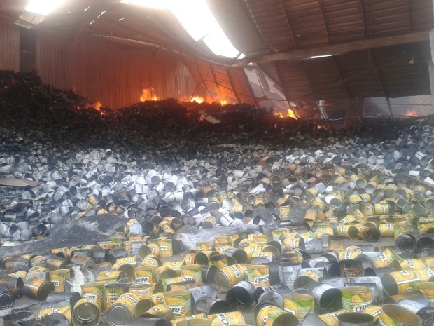 Corpo de Bombeiros Militar combate incêndio em indústria de alimentos em Neropólis