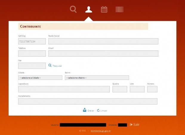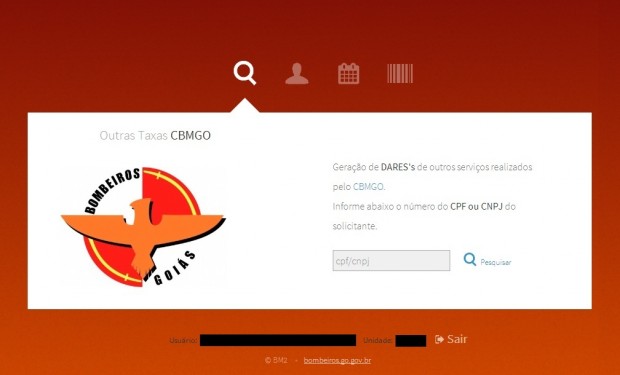 O link para acessar o sistema está na área restrita do portal web do CBMGO e também pode ser acessado diretamente através do endereço http://sicabom.bombeiros.go.gov.br/taxas.