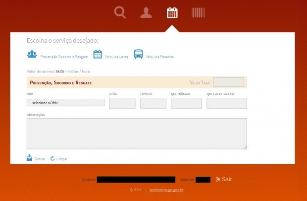 O sistema oferece um ambiente agradável e intuitivo, facilitando assim aos bombeiros militares gerar os DAREs das taxas mencionadas aos interessados, podendo ser acessado de qualquer local provido de conexão com internet, não sendo necessário o computador estar na rede da SSPJ. Na tela inicial será solicitado o usuário e senha do militar que são os mesmos utilizados no SIAPI – Sistema de Análise de Projetos e Inspeções.