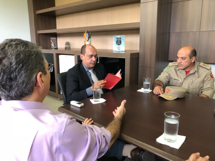 Após autorização do governo do Estado, O Comandante Geral do Corpo de Bombeiros Militar do Estado de Goiás, Coronel Márcio André de Morais, e o presidente do Detran Goiás, Flávio Murilo, se reuniram na manhã desta sexta-feira, 13, para iniciar a discussão na busca da assinatura de um termo de cooperação para a aquisição de um novo helicóptero para a Corporação. A ação fará parte do projeto Trânsito com Vida. Participaram também do encontro o deputado estadual Francisco Jr e o Comandante de Apoio Logístico do CBMGO, Coronel Dewislon Adelino Mateus. O novo helicóptero vai reforçar o serviço de resgate aeromédico do Corpo de Bombeiros Militar garantindo maior agilidade e eficiência. “A relação entre o CBMGO e o Detran sempre foi de muita proximidade e tendo como foco o bem estar da população goiana. Estamos trabalhando em prol da otimização dos nossos serviços”, afirmou o Comandante Morais. Confira fotos: