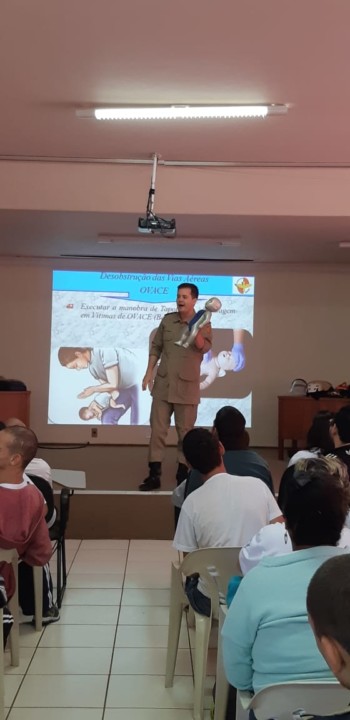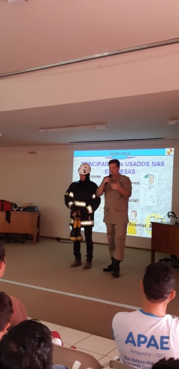 Na manhã desta quinta-feira, 23, o Corpo de Bombeiros Militar do Estado de Goiás (CBMGO) realizou uma palestra sobre Segurança e Prevenção a Acidentes de Trabalho e Primeiros Socorros na Associação de Pais e Amigos dos Excepcionais de Anápolis-GO.