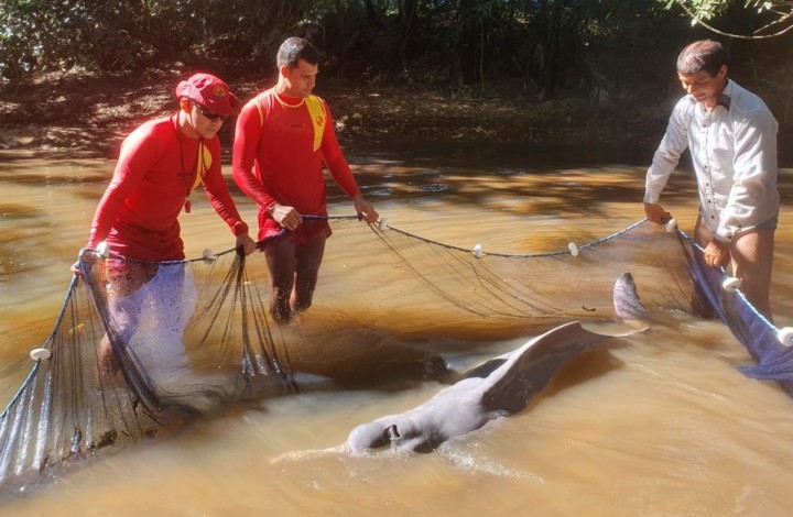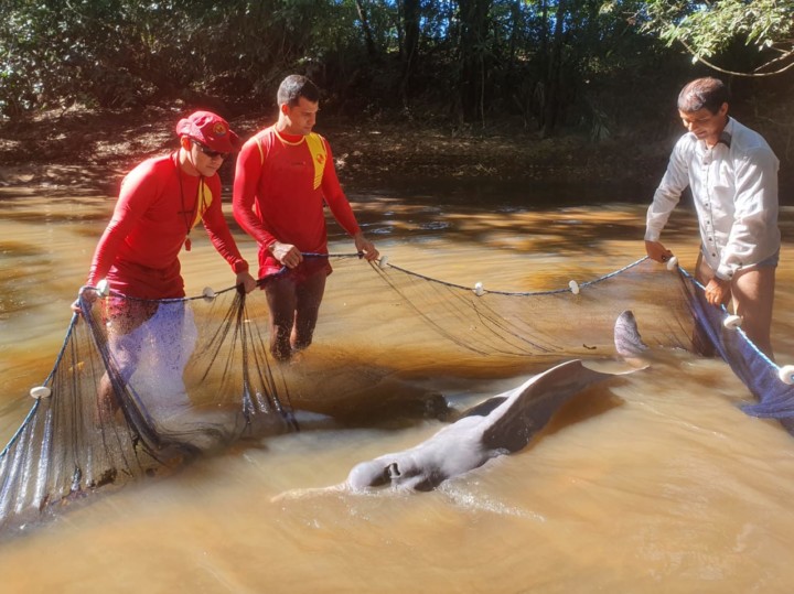 Na manhã de segunda-feira, 20, o Corpo de Bombeiros Militar do Estado de Goiás (CBMGO), em Aruanã, foi acionado para uma ocorrência de um boto preso em um poço do Ribeirão do Roncador, próximo a Araguapaz. No local, as equipes do CBMGO verificaram que o animal estava preso em uma pequena área de 1 metro de profundidade com limitações de deslocamento e de fornecimento de alimentação. Utilizando uma rede de pesca, os bombeiros realizaram o resgate do animal, sem ferimentos aparentes.