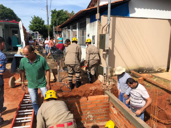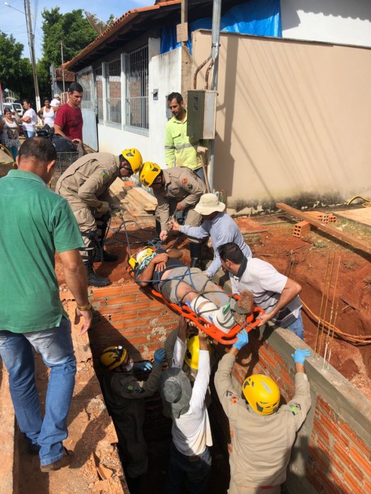 Corpo de Bombeiros Militar em Catalão resgata vítima em fossa séptica em construção