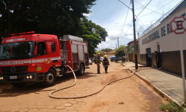Corpo de Bombeiros Militar em Ceres combate incêndio durante rebelião na unidade prisional de Rubiataba