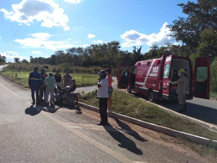 O Corpo de Bombeiros Militar do Estado de Goiás (CBMGO), em Minaçu, foi acionado na tarde desta terça-feira,14, para atender uma ocorrência de acidente envolvendo carro e moto, na GO-241, no trevo da Usina de Furnas.