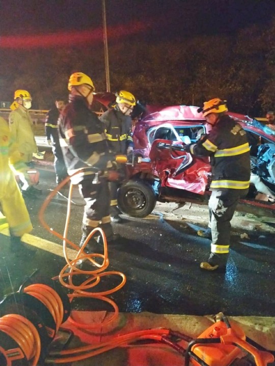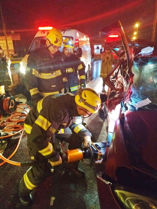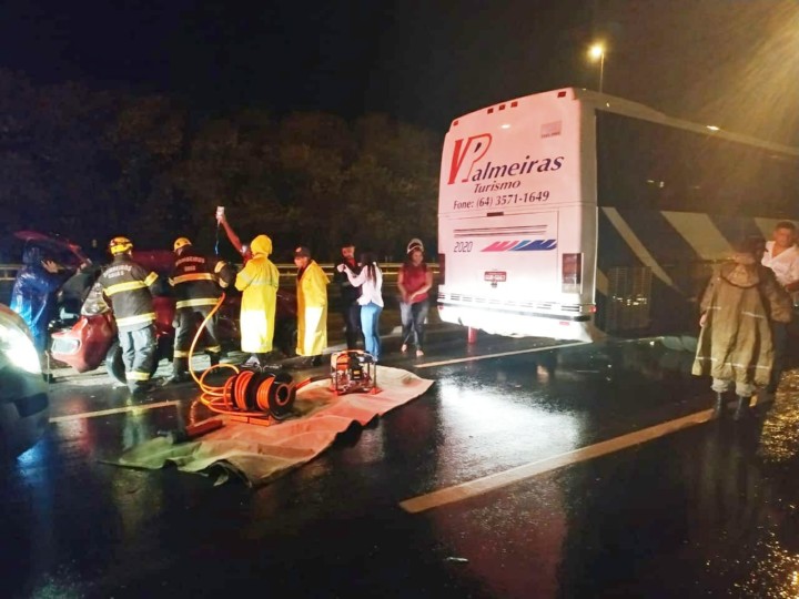 Na noite da última quarta-feira, 23, às 23h10, o Corpo de Bombeiros Militar do Estado de Goiás (CBMGO), em Trindade, foi acionado para uma ocorrência de acidente de trânsito envolvendo um ônibus e um veículo de passeio na GO-060.