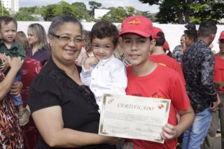 Foi realizada na manhã de sábado, 2, a formatura do Programa Educacional Bombeiro Mirim (Proebom), do Batalhão de Salvamento em Emergência (BSE), do Corpo de Bombeiros Militar do Estado de Goiás (CBMGO). A solenidade foi presidida pelo Comandante Geral do CBMGO, Coronel Carlos Helbingen Júnior, e contou com a presença de autoridades, além de amigos e familiares dos alunos. Um simulado de atendimento pré-hospitalar e combate a incêndio foi realizado durante a formatura. O Proebom é um programa social do CBMGO que visa fortalecer nas crianças os princípios morais e éticos, além de proporcionar a elas noções de conhecimentos básicos nas áreas de atuação da Corporação, como primeiros socorros, combate a incêndio, nós e amarrações. O programa é coordenado pela Fundação Dom Pedro II.