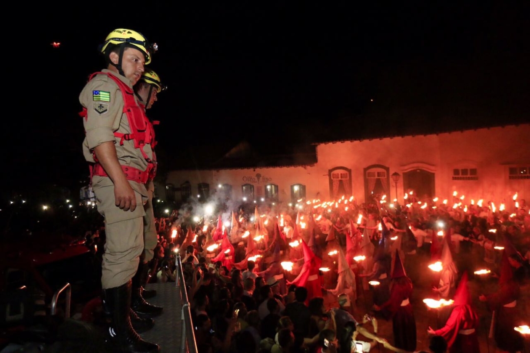 O Corpo de Bombeiros Militar do Estado de Goiás (CBMGO) garantiu a segurança durante a Procissão do Fogaréu, na cidade de Goiás, na noite desta quarta-feira, 12. Foi estruturado um Posto de Comando próximo a Catedral de Sant’Ana com o objetivo de centralizar todas as informações da operação. Os bombeiros militares e as viaturas foram empenhadas em locais estratégicos visando preservar a vida e patrimônio.