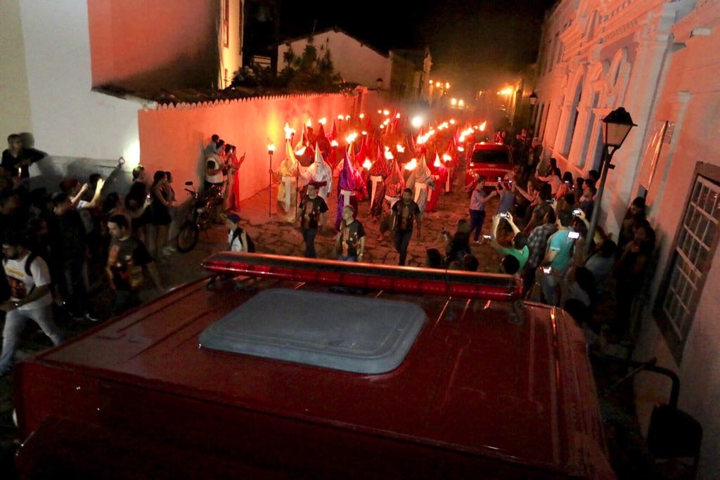 A Procissão do Fogaréu ocorre desde 1965 na cidade de Goiás, onde 40 farricocos descalços com vestes coloridas, encapuzados e munidos de tochas, neste cenário representando os soldados romanos, percorrem ruas de pedras da antiga capital do Estado em busca de Cristo. Confira as fotos: