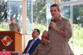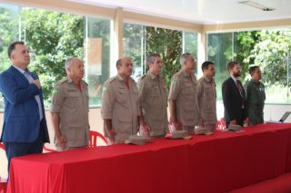 O Corpo de Bombeiros Militar do Estado de Goiás (CBMGO) promoveu na manhã desta sexta-feira, 16, uma solenidade para marcar o lançamento da construção do hangar da Corporação no Aeroporto Santa Genoveva, em Goiânia. O ato foi presidido pelo Comandante Geral do CBMGO, Coronel Carlos Helbingen Júnior, e reuniu os bombeiros militares que trabalham no Centro de Operações Aéreas, além de autoridades civis representando a Infraero, a prefeitura e a Secretaria Municipal de Saúde.