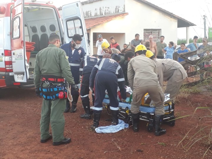 No local, a equipe de Bombeiros Militares realizou o socorro da vítima que estava na moto, sexo feminino, 24 anos, inconsciente, com traumatismo cranioencefálico levada para Unidade de Pronto Atendimento (UPA) de Ceres. Devido a gravidade, o hospital de Ceres solicitou o atendimento secundário do Helicóptero-01 que levou a vítima para o Hospital de Urgências Otávio Lage (HUGOL).