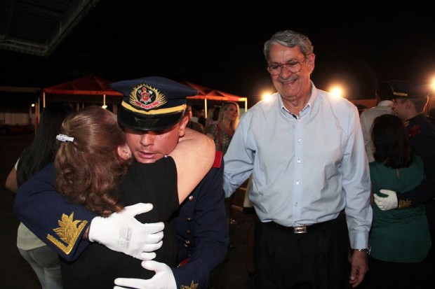 O Corpo de Bombeiros Militar do Estado de Goiás (CBMGO) promoveu na noite de quinta-feira, 25, a cerimônia de entrega do Espadim Dom Pedro II aos 38 alunos do Curso de Formação de Oficiais (CFO) do Corpo de Bombeiros Militar do Estado do Mato Grosso e do Estado do Mato Grosso do Sul, Turma Pantanal. A solenidade, presidida pelo Comandante Geral do CBMGO, Coronel Carlos Helbingen Júnior, foi realizada no pátio do 1º Batalhão Bombeiro Militar, em Goiânia, e contou com a presença de diversas autoridades, além de familiares e amigos dos Alunos Oficiais.