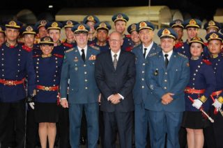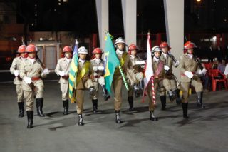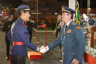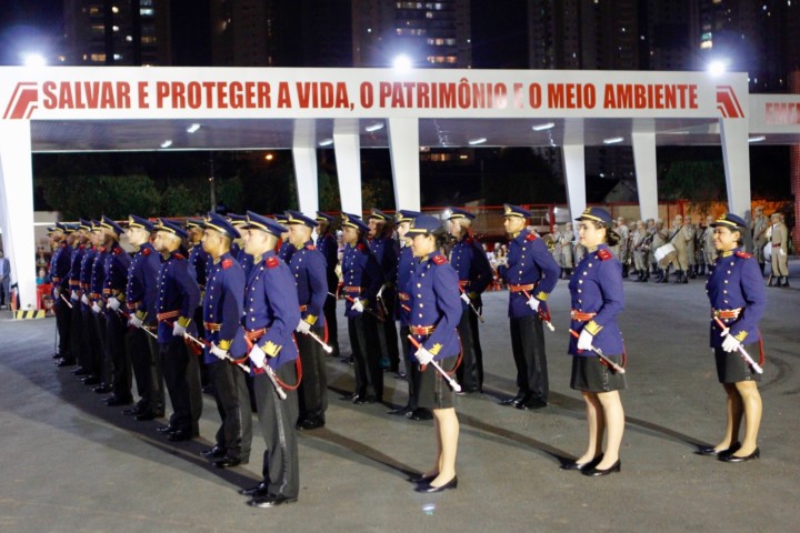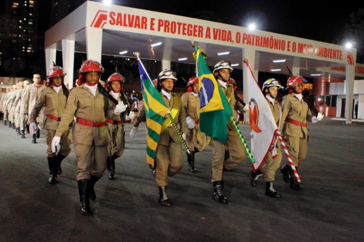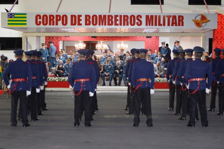 O Corpo de Bombeiros Militar do Estado de Goiás (CBMGO) promoveu na noite de quinta-feira, 1º, a cerimônia de entrega do Espadim Dom Pedro II aos alunos do Curso de Formação de Oficiais (CFO). A solenidade, presidida pelo Comandante Geral do CBMGO, Coronel Carlos Helbingen Júnior, foi realizada no pátio do novo Comando Geral da Corporação e contou com a participação de diversas autoridades, entre elas o secretário da Segurança Pública de Goiás, Irapuan Costa Júnior. A entrega do Espadim significa a efetivação do aluno como Cadete da Corporação. Ao término do Curso de Formação, o Aluno Oficial torna-se Aspirante a Oficial e troca o espadim por uma espada, símbolo do oficialato. O Espadim Dom Pedro II trás em sua lâmina a inscrição em latim “alienam vitam et bona salvare”, que significa “vidas alheias e riquezas salvar, lema dos bombeiros militares.