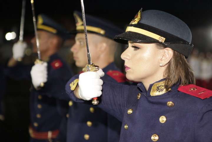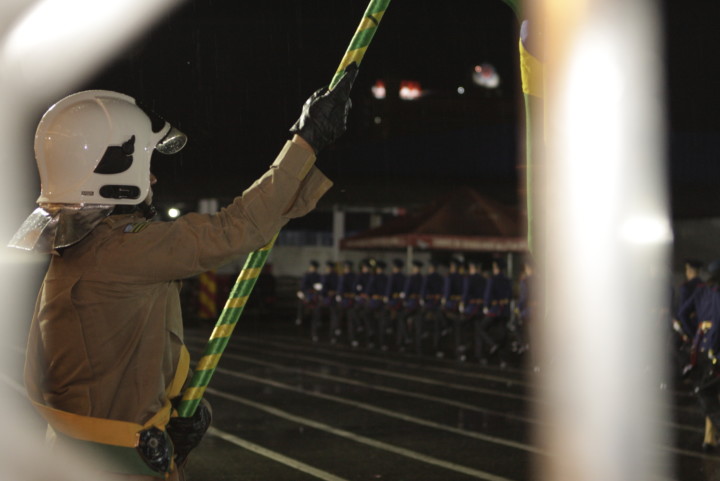 O Corpo de Bombeiros Militar do Estado de Goiás (CBMGO) promoveu na noite de quinta-feira, 28, a cerimônia de entrega do Espadim Dom Pedro II aos alunos do Curso de Formação de Oficiais (CFO). A solenidade, presidida pelo Comandante Geral do CBMGO, Coronel Esmeraldino Jacinto de Lemos, foi realizada no pátio do 1º BBM. A entrega do Espadim significa a efetivação do aluno como Cadete da Corporação. Ao término do Curso de Formação, o Aluno Oficial torna-se Aspirante a Oficial e troca o espadim por uma espada, símbolo do oficialato. O Espadim Dom Pedro II trás em sua lâmina a inscrição em latim “alienam vitam et bona salvare”, que significa “vidas alheias e riquezas salvar, lema dos bombeiros militares.