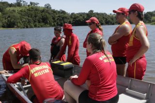 Durante o treinamento, foram repassadas ações de atendimento a ocorrências de vítimas em ambiente aquático (piscinas, lagos e rios) com introdução teórica sobre o tema, exposição de materiais, técnicas de resgate de vítimas e execução nas águas do lago. Foram ministradas também situações e simulados de ocorrências reais, capacitando os profissionais para uma melhor resposta emergencial às vítimas, utilizando ou não embarcações e motonáuticas. Confira Fotos: