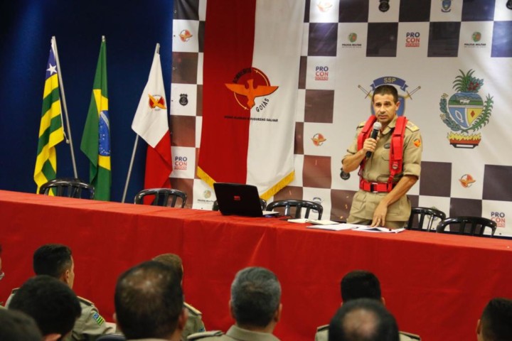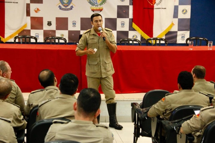 Foi realizada na manhã desta quinta-feira, 31, a 1ª Reunião Estratégica de 2019 do Corpo de Bombeiros Militar do Estado de Goiás. O evento contou com a presença do Comandante Geral do CBMGO, Coronel Dewislon Adelino Mateus, e teve como público alvo os oficiais superiores e comandante de unidades operacionais da corporação. Palestras institucionais visando ações que serão desenvolvidas em prol do crescimento da Corporação foram ministradas no auditório da Secretaria de Segurança Pública e Defesa Social de Goiás. Entre os temas abordados, a implantação do Serviço de Resgate Aeromédico de Asas Fixas e a otimização do uso do helicóptero no serviço operacional e a captação e aplicação de recursos extraorçamentários. A reunião foi encerrada com a fala do Comandante Geral do CBMGO com orientações de caráter doutrinário e relacionadas as metas do Comando da Corporação. Confira fotos: