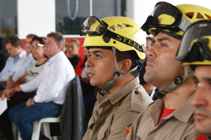Bombeiros Militares de Itaberaí receberam na sexta-feira, 15, novos materiais e equipamentos operacionais. A cerimônia de entrega foi presidida pelo Comandante Geral do CBMGO, Coronel Carlos Helbingen Júnior, e contou com as presenças do prefeito Carlos Roberto da Silva e do presidente da Câmara de Vereadores, Ednaldo Diniz, além de diversas autoridades civis e militares. Os novos materiais vão possibilitar o reaparelhamento do serviço operacional, visando proporcionar mais segurança ao bombeiro militar nas operações de combate a incêndio. Na ocasião também foram entregues medalhas e títulos de reconhecimento a pessoas que contribuíram com os serviços prestados pela corporação na região. Confira fotos:
