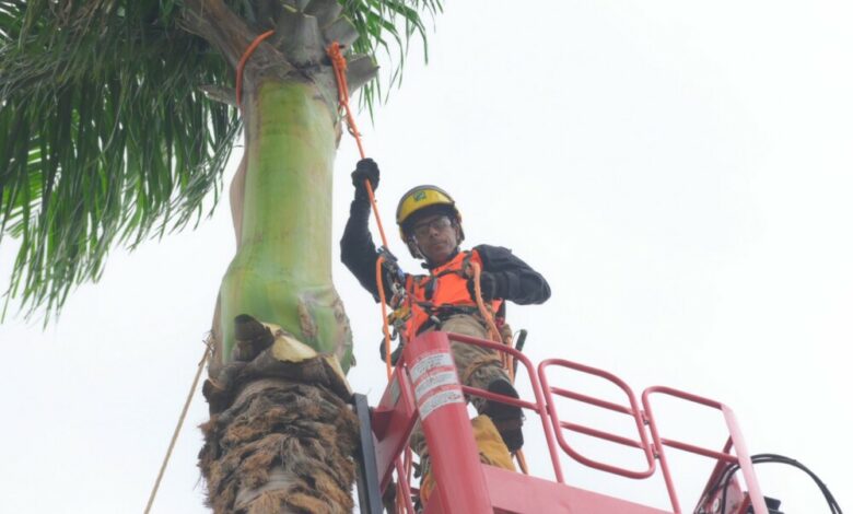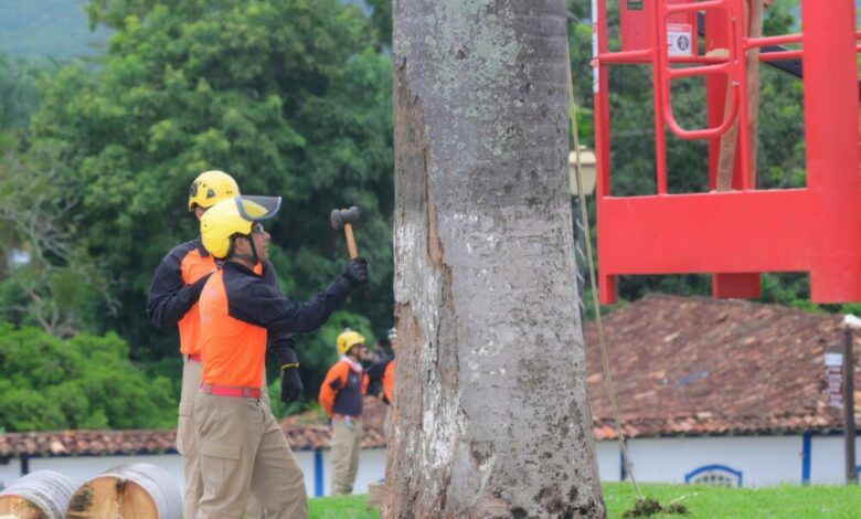 Após ser acionado pelas autoridades municipais, o 17° Batalhão de Bombeiros Militar de Pirenópolis, em colaboração com o comando da Operação Tempestade 2023, mobilizou cinco especialistas em operações envolvendo árvores. A intervenção foi motivada por dois laudos assinados por engenheiros ambientais que identificaram seis palmeiras imperiais com iminente risco de queda no coração do centro histórico.