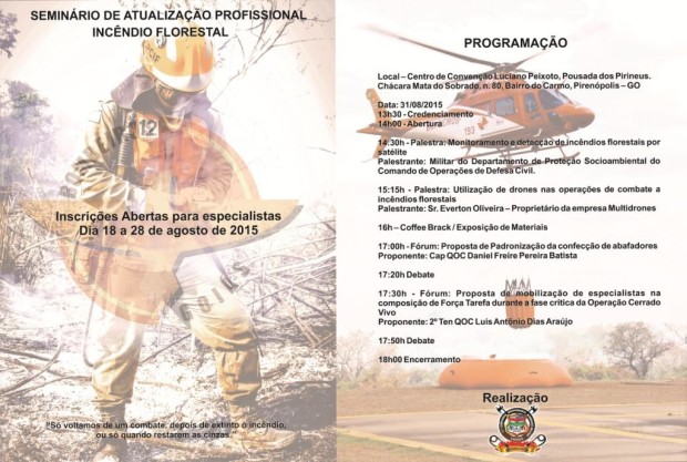 O Corpo de Bombeiros Militar do Estado de Goiás realizará no próximo dia 31 de agosto o Seminário para especialistas em Prevenção e Combate a Incêndio Florestal.