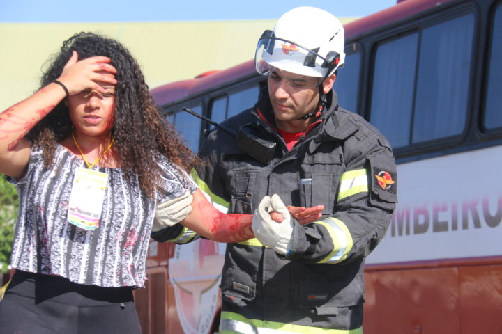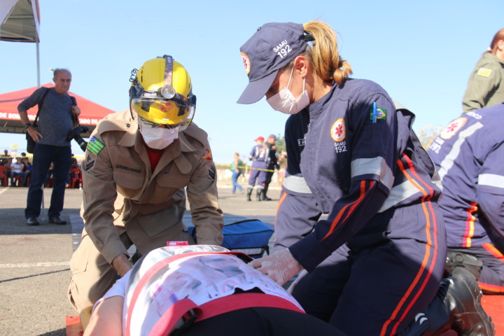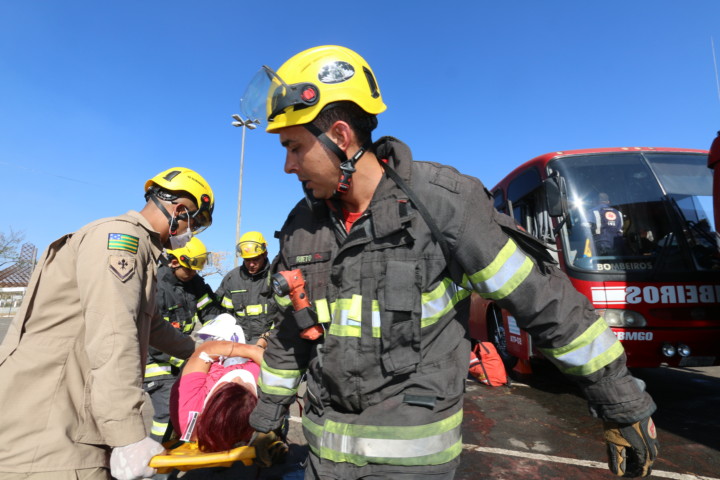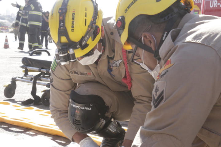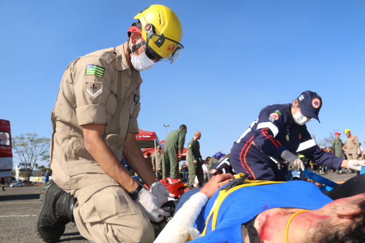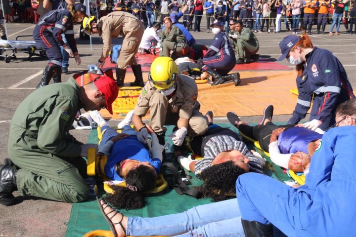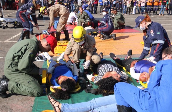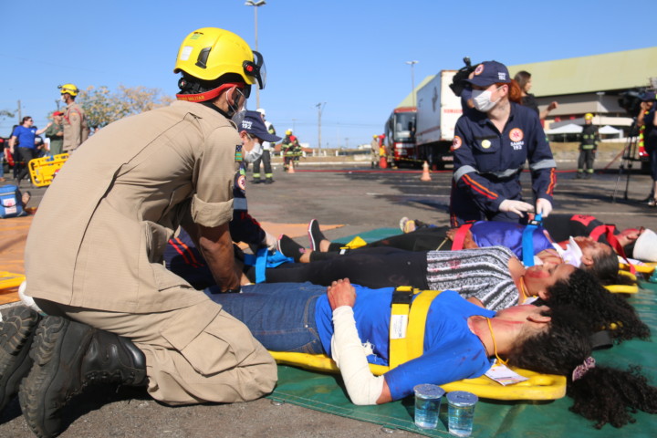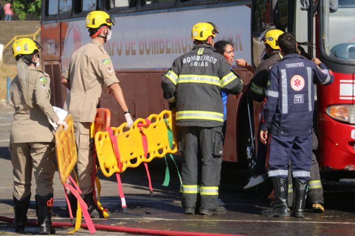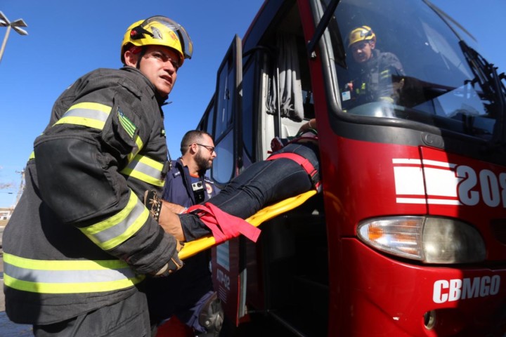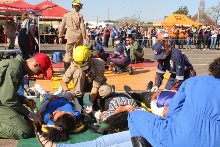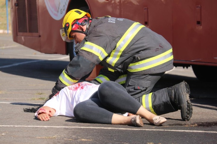 O Corpo de Bombeiros Militar do Estado de Goiás (CBMGO) realizou nesta quinta-feira, 5, às 15h, um Simulado Operacional de acidente de trânsito envolvendo um ônibus e um caminhão, com 20 vítimas, no estacionamento do Estádio Serra Dourada.
