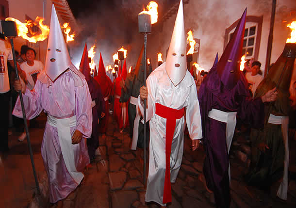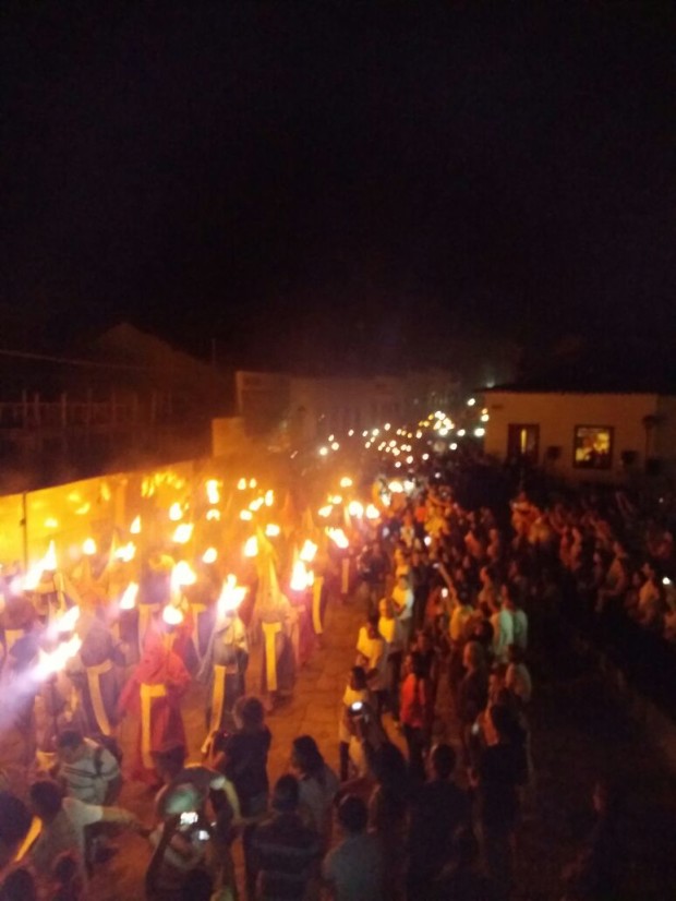 O espetáculo ocorre desde 1965 e retrata a prisão de Cristo. Com as luzes apagadas, 40 farricocos descalços com vestes coloridas, encapuzados e munidos de tochas representam os soldados romanos ao percorrer ruas de pedras da antiga capital do estado em busca de Jesus Cristo. Nenhuma ocorrência grave foi registrada durante o evento. Confira fotos: