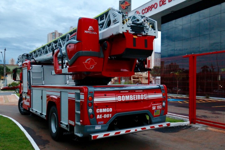 O Corpo de Bombeiros Militar do Estado de Goiás (CBMGO) recebeu na noite de quinta-feira, 22, na sede do novo Comando Geral da Corporação, uma viatura Auto Escada Mecânica Magirus de grande relevância para o emprego operacional em ocorrências de combate a Incêndio em edifícios elevados e também para resgate de pessoas. A solenidade de entrega foi presidida pelo Comandante Geral do CBMGO, Coronel Carlos Helbingen Júnior, e contou com a presença de diversas autoridades, entre elas o secretário de Segurança Pública do Estado de Goiás, Irapuan Costa Júnior. A aquisição da Viatura Magirus é fruto da importante parceira do CBMGO com a Justiça do Trabalho e Ministério Público do Trabalho da 18ª Região, e representa um investimento de mais R$ 4. 142.390,00 (quatro milhões cento e quarenta e dois mil e 390 reais). Com alcance de 42 metros de altura, a viatura Auto Escada Mecânica Magirus se destaca pela versatilidade, podendo ser empregada também com angulação negativa de até 10 graus, possibilitando o salvamento e resgate de vítimas em locais abaixo do solo. Totalmente articulada e de fácil elevação, aumentará a eficácia do CBMGO para o atendimento das ocorrências de Combate a Incêndio e Salvamento de pessoas. Com o aumento da construção de edifícios elevados na região metropolitana, a aquisição representa um grande avanço no atendimento do CBMGO à população goiana, e faz parte do Planejamento Estratégico da Corporação e dos constantes investimentos realizados pelo Governo do Estado. Confira fotos da solenidade: