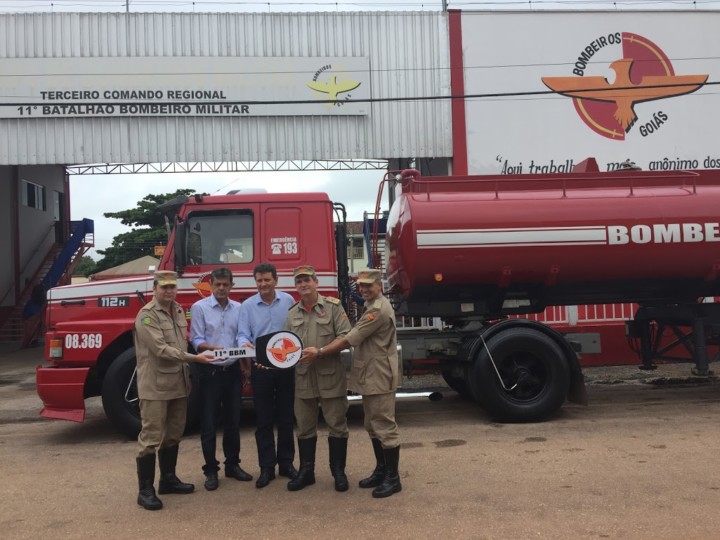 O Comandante-Geral do Corpo de Bombeiros Militar do Estado de Goiás, Coronel Carlos Helbingen Júnior, presidiu na terça-feira, 6, a solenidade de entrega de uma nova viatura para o 11º Batalhão Bombeiro Militar (11º BBM), em Porangatu. Em parceria com a Receita Federal do Brasil e com recursos do Funebom, foi adquirido um veículo Auto Tanque (AT-04). Com capacidade para 20 mil litros d’água, a viatura é importante para aumentar o poder operacional na região, principalmente no combate aos diversos tipos de incêndios. Participaram da solenidade, o prefeito Pedro Fernandes, o deputado estadual Julio da Retífica, o Comandante do 3º CRBM, Tenente Coronel Lindomar, o Comandante do 11º BBM, Tenente Coronel Anderson Moura, além de diversas autoridades da região.
