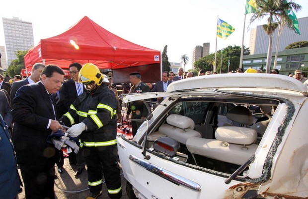 Novas viaturas e materiais operacionais foram entregues na manhã desta segunda-feira, dia 2, pelo governador Marconi Perillo ao Corpo de Bombeiros Militar do Estado de Goiás. A entrega ocorreu durante solenidade de abertura da Semana da Pátria, na Praça Cívica. As chaves simbólicas das novas viaturas foram entregues pelo governador ao Comandante Geral do CBMGO, Coronel Carlos Helbingen Júnior.