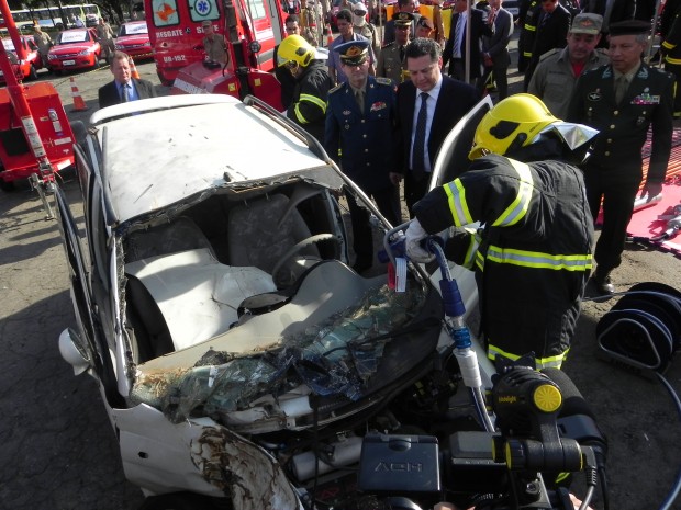 Em entrevista coletiva, o governador Marconi Perillo destacou que o CBMGO é hoje um dos três mais bem equipados do Brasil. Ao lado do Coronel Helbingen, ele acompanhou uma demonstração técnico-profissional dos Bombeiros utilizando os novos equipamentos. O Comandante Geral falou sobre a importância das novas viaturas e equipamentos que reforçarão o serviço de excelência prestado pela Corporação a toda a população goiana. Confira fotos da entrega:
