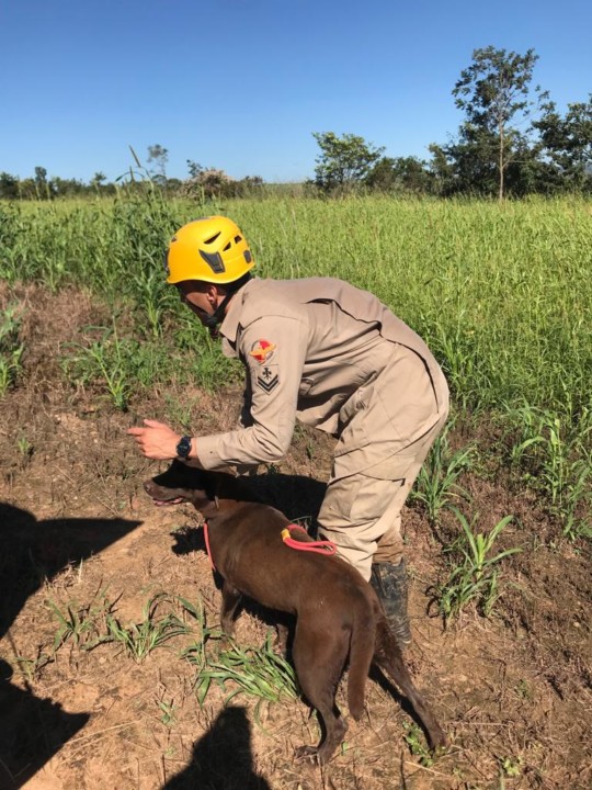 Equipes do Bombeiros Militares e cães farejadores do CBMGO resgatam idoso em mata no município de Cristalina