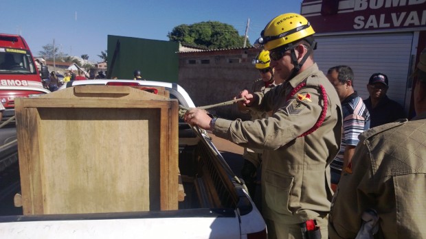A equipe de Bombeiros constatou que o felino estava bastante assustado.  Foi necessário o apoio de um veterinário do Zoológico de Goiânia para realizar o resgate que só foi possível com o uso de um dardo tranquilizante. A Polícia Militar deu suporte para a equipe que realizou o isolamento da área e a evacuação das casas vizinhas até a chegada do veterinário.