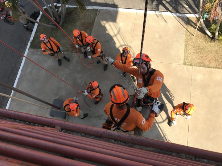 Começou no início deste mês o 1º Curso de Busca, Resgate, e Salvamento com Cães (CBRESC) do Corpo de Bombeiros Militar do Estado de Goiás. O curso militar é a realização de um antigo projeto da Corporação. O CBRESC formará condutores de cães aptos para o atendimento às ocorrências de busca, resgate e salvamento com a utilização dessa extraordinária ferramenta, o cão. A coordenação, representada pelo 1° Tenente Freitas, conta com o apoio técnico e profissional de diversos instrutores como o 1° Sargento Soares, 1° Sargento Avelar, 3° Sargento Costa, 3° Sargento Wanderley, Cabo Walisson e Soldado Romanowisk. Estes têm como desafio a capacitação dos 15 militares que iniciaram o curso, representantes do Estado de Goiás, Tocantins, Rio de Janeiro e Roraima. Na primeira semana de atividades, os alunos foram recebidos pelo Coronel Sérgio Ribeiro Lopes, Comandante da Academia e Ensino Bombeiro Militar, e pela Coordenação do CBRESC. Foram ministradas instruções relativas à história dos cães, operações de salvamento com uso de cães, cuidados veterinários básicos, etologia e bases do treino e condicionamento animal. Confira fotos: