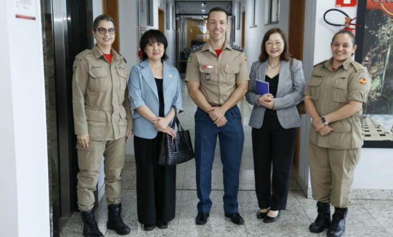O Corpo de Bombeiros Militar do Estado de Goiás recebeu na tarde desta terça-feira a visita de servidoras da Embaixada do Japão no Brasil. Na oportunidade, a Secretária de Segurança da Embaixada do Japão, senhora Kana Tachi, e a Assessora Executiva da Embaixada do Japão, senhora Ammy Tomoyasu Braga, visitaram as instalações do Comando Geral da Corporação e conheceram um pouco da estrutura administrativa do CBMGO. A visita tratou, dentre outros assuntos, da integração entre o CBMGO e a Embaixada do Japão, possibilidades de intercâmbio de conhecimentos e tecnologias. Confira fotos: